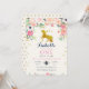 A gold foiled unicorn surrounded by a frame of garden woodland flowers plus some magic dust