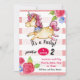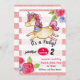 Watercolor flowers, faux glitter elements, lots of pink, and the cutest watercolor unicorn wearing pearls and 80s leg warmers. The card is editable. Just adjust the text to fit your party planning. Magical unicorn.