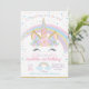 Pastel rainbow magical unicorn birthday invitations