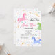 Unicorn Birthday Party Invitation multicolor pink blue green yellow