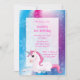 Unicorn Birthday Party Invitations This unicorn birthday party invitation is accented with a vibrant colourful background and highlighted with flowers. The unicorn is oh so sweet and adorable. The ideal birthday invitation for any little girl of any age.