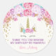 Unicorn birthday stickers, pink and gold classic round sticker