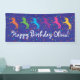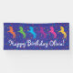 Colourful unicorns on confetti party background birthday banner for girls that love unicorns! Edit the text to your name and message.
