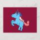 Unicorn Blue Patriotic USA Flag Mane Cartoon Postcard