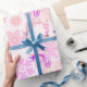 Unicorn Cute Girl Whimsical Pink Snowflakes Wrapping Paper