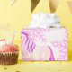 Pink, girly and cute. A whimsical Christmas wrapping paper featuring a pink Unicorn in a swirl of blue stars forming a Christmas tree shape.