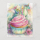 Unicorn Dragon With Cupcake and Flowers Postcard