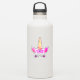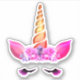 Gold and purple unicorn, horn and beautiful eye lashes with flowers as her crown.