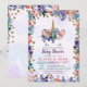 Unicorn Face Glitter Floral Girl Baby Shower Invitation