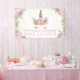 Unicorn baby shower banner with adorable pink and gold floral unicorn face with pretty gold eyelashes and horn on a beautiful pink and gold floral background. This cute unicorn baby shower banner is easily customised with the text of your choice.