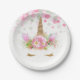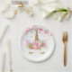 Unicorn paper plates with adorable unicorn face with gold eyelashes and horn on a pretty pink floral and polka dot background. These cute unicorn paper plates are easily customised with the text of your choice, and you can add a background colour and remove the dots.