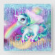 Unicorn fairy winter glitter rainbow ice square wall clock