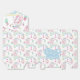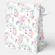 The design features a stylised unicorn head with a flowing pastel-coloured mane in shades of pink, blue, and yellow, adorned with sparkles. Surrounding the unicorn are decorative elements, including pink hearts, blooming flowers, and green leaves, creating a dreamy and whimsical aesthetic.