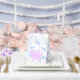 This seamless pattern features stylised, futuristic unicorns with large wings in a prancing or leaping pose. The unicorns are designed with a gradient colour scheme of pastel blue, pink, and purple stripes, giving them a modern and almost holographic appearance. The flowing mane, tail, and wings enhance the sense of movement and fantasy. The background is white, allowing the vibrant unicorns to stand out. The overall aesthetic is sleek and contemporary with a dreamy, ethereal vibe, making it perfect for a magical or whimsical-themed design.