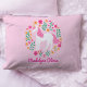 This pillow case features a cute pink unicorn design with pink and orange flowers flowers. Personalise it with a name.
