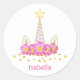 Unicorn, flowers, gold confetti & calligraphy classic round sticker