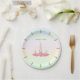 Elegant beautiful Party paper plate with a cute unicorn, flowers and gold dots on multicolored pastel gradient. Ideal for magical birthdays, showers, anniversaries, special occasions and all daily celebrations! Party Time text can be personalised.