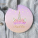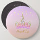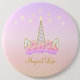 Unicorn flowers and stars on Ipanema shades background button. Magical life text can be personalised.