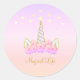 Unicorn flowers stars on Ipanema shades background sticker. Text can be customised.