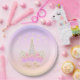 Unicorn flowers and stars magic time Paper Plates. Magic time text can be customised.