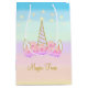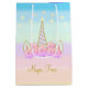 Beautiful Unicorn flowers and stars Gift Bag. Magic Time text can be customised.