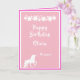 A fantasy unicorn in white for a young girl/teen girl's birthday. Pink background colour. A white and bright pink frame and white stars. White letters and the text: Happy Birthday. Template for name and age.