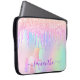 Unicorn glitter drips rainbow name iridescent laptop sleeve