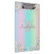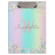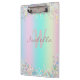 Unicorn Holographic Glitter Clipboard - A trendy sparkling coloured Clipboard with mixed turquoise, pink and mauve and light yellow glitter. You can personalise this Clipboard by adding your name and initials.