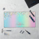 Unicorn Holographic Glitter Desk Mat - A trendy sparkling coloured Desk Mat with mixed turquoise, pink and mauve and light yellow glitter. You can personalise this Desk Mat by adding your name and initials.