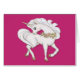 Enjoy the magic with this lovely white Unicorn. gold accents and floral wreath around her neck. Deep pink background.