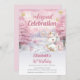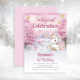 We know you can't wait to celebrate your little one's birthday and this winter season-themed "Magical Celebration" design celebrates your little one in glorious pink! A cute little unicorn is all decked out in her pink and gold-toned finest against a snowy, starry pink and pale lavender background. The beautiful pink trees are in bloom as the snow piles up all around. Great for celebrating winter to early spring birthdays.