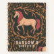 This magical notebook/journal features a unicorn with crimson a red mane and tail on a black background botanical and floral pattern. Personalise for your needs. You can find more matching products at my store.