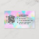 This pretty and modern business card is perfect for the trendy and stylish nail technician. It features faux printed sparkly glitter dripping "nails" typography on a loud and bold background. The colour scheme includes a unicorn rainbow holographic iridescent look, including pink, green, blue, yellow, purple, and teal. On the back displays your business information, a scannable QR code for your customers to connect, and various social media symbols to represent the different ways your customers can connect with you when they scan your code. Contact the designer if you need any additional symbols or if you need some taken away, or for any other request.