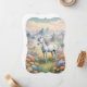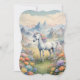 A note card with one side blank for your message. A note card showing a dreamy image of a white unicorn with a rainbow mane standing in a field of flowers. In the background are majestic mountains. The perfect gift to give those who love magical and mystical unicorns. Contains generative content.