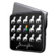 Unicorn Pattern Personalised Black and White Silhouette Girls Neoprene Laptop Sleeve. A pretty pattern of white unicorn silhouettes on black background. Red, orange, yellow, green, blue and purple colours for the centre unicorn in a rainbow watercolor design. Personalise this custom laptop case with name in beautiful script font underneath the unicorns. Pretty unicorn themed electronic accessories for kids, tweens and teen girls.