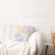 Gorgeous unicorn pillow with a rainbow and clouds, with a customisable name.