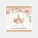 Unicorn Pink and Gold Birthday Party Napkins - feature beautiful watercolor flowers (roses, peonies, greenery, etc.) with printed glitter and foil and a unicorn face.