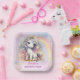 Unicorn Pink Gold Glitter Girl Birthday Paper Plate