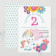 For when you can't get together to celebrate in person, a virtual party is the next best thing. Here is a cute unicorn themed design for your little girl's second Virtual Birthday Party, along with colourful simplistic florals in shades of pink, teal and yellow. All of the text can be easily personalised to your own details. On the back, the background is white with teal stars. You can make further changes if you wish via the customise further option, to font styles and colours, and also the background colours.