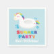 Colourful and eye catching birthday party paper napkins for your summer birthday celebration! The plate features a white unicorn with rainbow mane pool float and the non editable text "summer party" in round and bold rainbow colours. Add your party message in space provided.