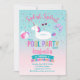 Unicorn Pool Party Birthday Invitation Pink Gold