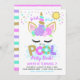 Customise this cute Unicorn Pool Party Birthday Party Invitation with your own details.