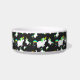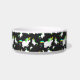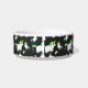 This is a heavy, durable bowl decorated with Tibbies of many colors, the perfect size for hungry/thirsty Tibs. The design is interesting and printing clear.
