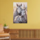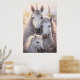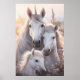 Poster of a majestic unicorn family standing closely together amidst a field of delicate wildflowers. Soft sunlight bathes the scene, highlighting their flowing manes and serene expressions.