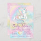 Unicorn baby shower invitations with adorable unicorn on a beautiful pastel rainbow background. These unicorn baby shower invitations are easily customised for your event by simply adding your details. You can also move the heart and lines as needed.