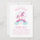 A cute pink unicorn surrounded with hearts and standing on a rainbow and decorates this cute girl unicorn birthday party invitation. Personalise it for you girls birthday party. Designed for you by Blackberry Boulevard.