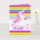 Whimsy unicorn rainbow 3rd Birthday card. Customize / personalize this card with your own personal message in side and name on the outside. Unique watercolor painting art and design by Sarah Trett. www.sarahtrett.com for www.mylittleeden.com on zazzle.