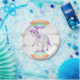 A Rainbow Clouds and a Unicorn Purple and cute. A whimsical birthday party plate that can be altered to your name and information.