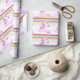 Whimsy unicorn art rainbow personalised new baby wrapping paper. Customise with your own baby name and message, currently reads Congratulations on your new baby. Evelyn. Original watercolor art painting and graphic design by Sarah Trett. www.sarahtrett.com for www.mylittleeden.com