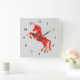 Unicorn red glitter mythical fantasy square wall clock